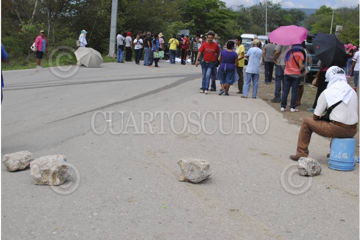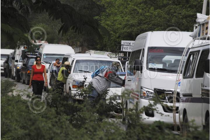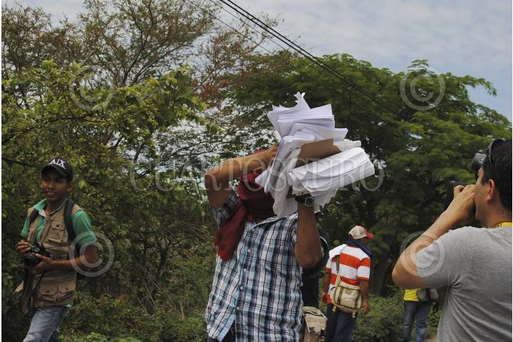 TIXTLA, GUERRERO, 06JUNIO2015.- Algunos padres de familia de los 43 estudiantes desaparecidos, e integrantes del Movimiento Popular Guerrerense (MPG) que están en contra de las elecciones, instalaron un retén donde revisaron vehículos, en busca de propaganda electoral, a los automovilistas que llevaran una lona de algún candidato, con intención a simple vista de reutilizarla, se las decomisaron. Así también, a los automovilistas que tenían colocadas playeras con publicidad electoral en los asiento como funda también les fue decomisada y posteriormente quemada en la cinta asfáltica de la Tixtla – Chilapa, en el punto conocido como el crucero de Atliaca. FOTOS: JOSÈ I. HERNÀNDEZ /CUARTOSCURO.COM