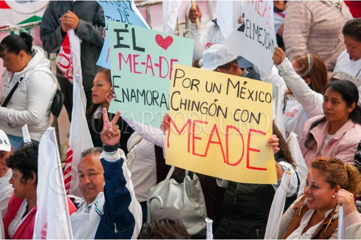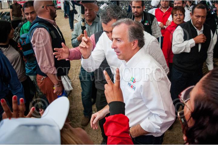 IXTAPALUCA, ESTADO DE MÉXICO, 12ABRIL2018.- José Antonio Meade, candidato de a la Presidencia de la Republica por la coalición “Todos por México” (Partido Revolucionario Institucional, Partido Verde y Nueva Alianza), encabezó un acto proselitista ante cientos de personas afines al movimiento Antorcha Campesina. FOTO: DIEGO SIMÓN SÁNCHEZ /CUARTOSCURO.COM