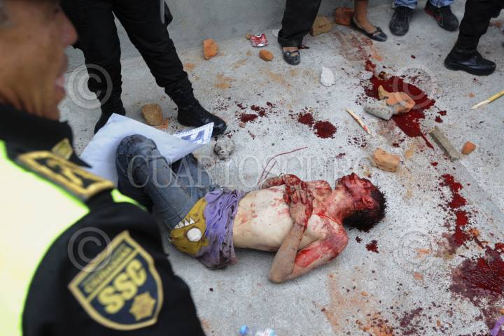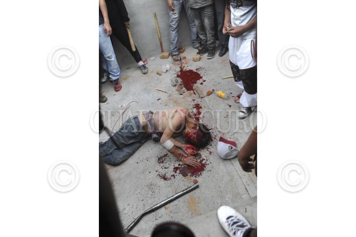 CHICONAUTLA, ESTADO DE MÉXICO, 13MARZO2013.- Un sujeto de aproximadamente 30 años fue linchado por los pobladores de Santa Maria Chiconautla. Presuntamente, este hombre intento secuestrar a una menor y al darse cuenta los colonos deciden tomar esta acción. El presunto delincuente fue rescatado con vida por elementos de la Secretaria de Seguridad Ciudadana y fue trasladado grave a un hospital cercano. FOTO: LUIS CARBAYO /CUARTOSCURO.COM
