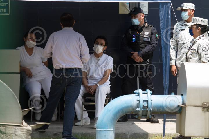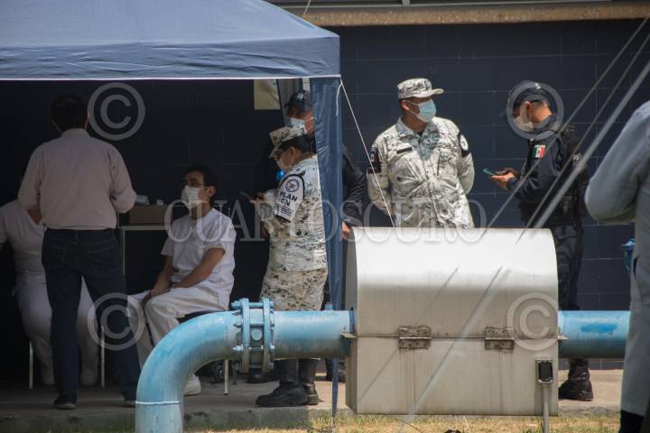 Elementos de la Guardia Nacional y Policía Federal en el Centro Médico Siglo XXI