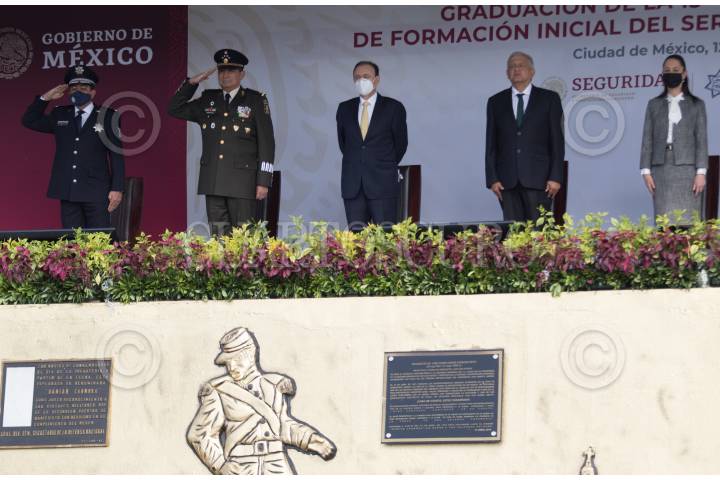 El Presidente Andrés Manuel López Obrador encabezó la ceremonia de graduación de integrantes de la Protección Federal, en el patio del Campo Militar No. 1 de la Secretaria de la Defensa Nacional.