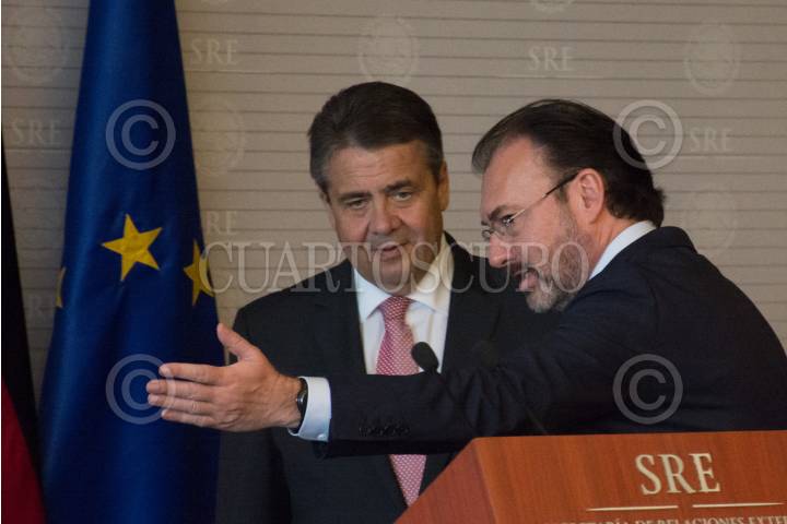 CIUDAD DE MÉXICO, 19MAYO2017.- Sigmar Gabriel, ministro Federal de Relaciones Exteriores de la República Federal de Alemania, durante la reunión que tuvo con Luis Videgaray, secretario de Relaciones Exteriores, en el marco del Año Dual México-Alemania. Ambos cancilleres dialogaron sobre la posición de ambos países frente al Tratado de Libre Comercio de América del Norte (TLCAN), y de la importancia de poner en marcha una implementación de leyes contra la tortura y de protección a periodistas. FOTO: MARIO JASSO /CUARTOSCURO.COM