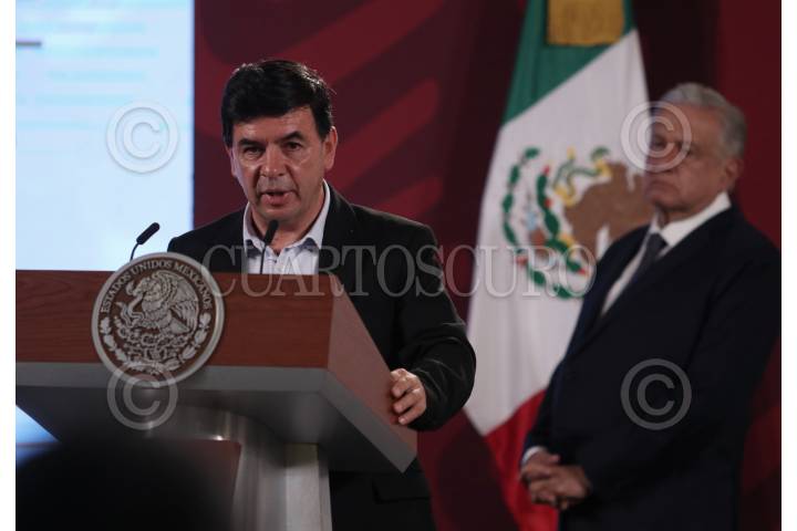 Jesús Ramírez Cuevas, Coordinador General de Comunicación Social y Vocero del Gobierno de la República y Andrés Manuel López Obrador, presidente de México durante conferencia matutina en Palacio Nacional