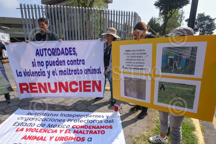 TOLUCA, ESTADO DE MÉXICO, 09SEPTIEMBRE2024.- Integrantes de diversas protectoras de animales se manifestaron en el ayuntamiento de Almoloya de Juárez por el asesinato de 2 perritas por parte de trabajadores de Bienestar Animal; Bala y Tata, dos perritas semidomiciliadas, vacunadas y esterilizadas, las cuales fueron recogidas por las autoridades municipales aludiendo un ataque, por este hecho se levantó una denuncia ante la FGJEM por maltrato animal y piden la destitución de la coordinadora de Salud y Bienestar Animal Municipal y otros servidores públicos, los activistas exigen justicia ya que no es la primera vez que esto sucede, pero no se ha podido comprobar otros casos hasta ahora. FOTO: CRISANTA ESPINOSA AGUILAR /CUARTOSCURO.COM