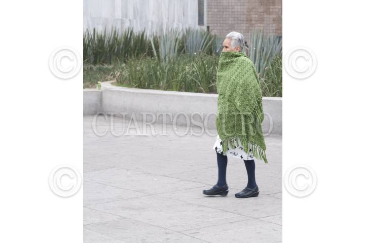MÉXICO, D.F. 07ENERO2013.- Una señora en la glorieta Insurgentes se protege del frío debido a las bajas temperaturas que se presentaron esta mañana con hasta 6º centígrados. FOTO: DIEGO SIMÓN SÁNCHEZ /CUARTOSCURO.COM