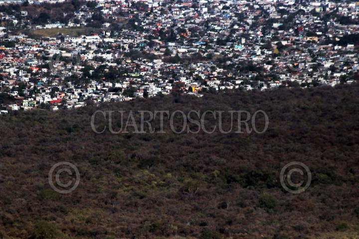 JIUTEPEC, MORELOS, 01MARZO2019.- El área metropolitana de Cuernavaca y la reserva estatal de El Texcal desde el Cerro de la Corona. El Texcal fue originado por un derrame de lava de 24 kilómetros del complejo volcánico Guespalapa, situado al norte de la entidad, que incluye los conos volcánicos, El Caballito, Manteca, El Hoyo y El Palomito hace más de 3 mil 500 años. Campesinos indígenas de la comunidad de Santa Catarina en Tepoztlán exigen al gobierno estatal que vigile el área y evite las invasiones de lo que es el reservorio de agua para la ciudad y su área metropolitana. FOTO: MARGARITO PÉREZ RETANA /CUARTOSCURO.COM