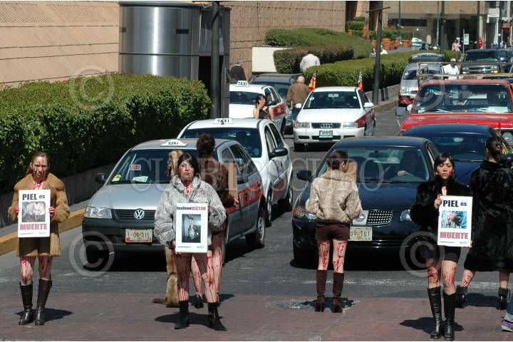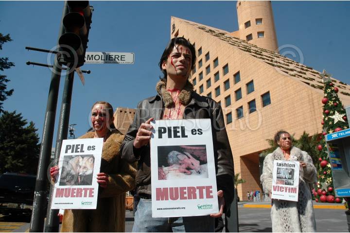MÉXICO D.F., 10NOVIEMBRE2007.- Integrantes de la organización Anima Naturalis se manifiestan por la matanza de animales para crear prendas finas de piel a las afueras de un centro comercial en la colonia Polanco. FOTO: RODOLFO ANGULO/CUARTOSCURO.COM
