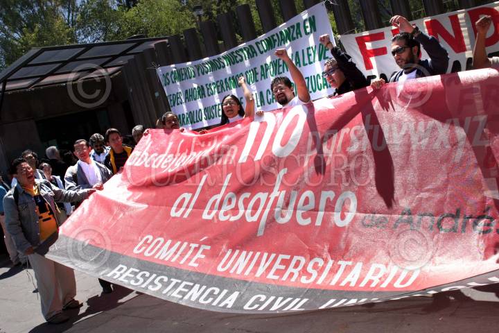 MEXICO, D.F., 17MARZO2005.- Integrantes de la facultad de Ciencias Políticas, se manifestaron encontra del desafuero del jefe de gobierno capitalino afuera de la Cámara de Diputados, los estudiantes también entregaron un documento a la sesión instructora. FOTO: Moisès Pablo/CUARTOSCURO.COM