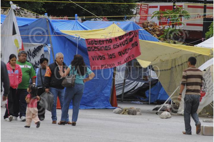 CHILPANCINGO, GUERRERO, 15 JUNIO 2015.- Algunos docentes continúan en plantón desde octubre del año pasado en la Plaza Primer Congreso de Anáhuac, en apoyo a los familiares de los 43 desaparecidos, además de que manifiestan su rechazo a la reforma educativa. El Secretario General de la Coordinadora Estatal de Trabajadores de la Educación en el Estado de Guerrero (CETEG), Ramos Reyes Guerrero, los ha denominado como “los expulsados de la Ceteg”. Ramos Reyes y sus seguidores liberaron el zócalo y se plantaron a un costado de Secretaria de Educación Guerrero, sobre la avenida Ruffo Figueroa. FOTO: JOSÈ I. HERNÀNDEZ /CUARTOSCURO.COM
