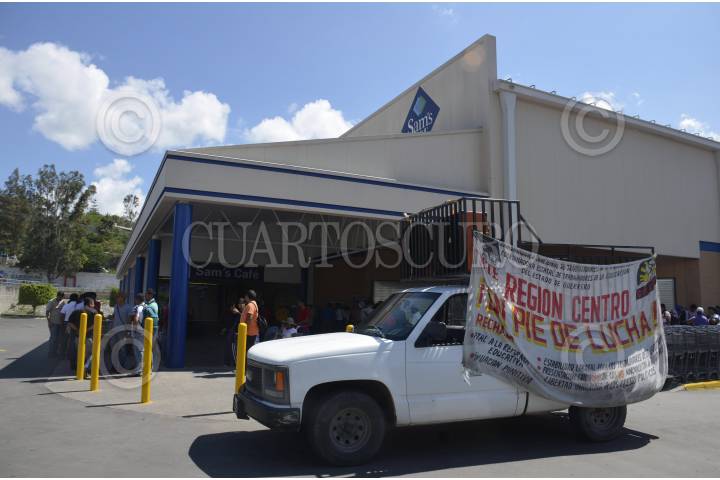CHILPANCINGO,GUERRERO, 03OCTUBRE2016.- Profesores de la Coordinadora Estatal de Trabajadores de la Educación en Guerrero (CETEG), protestaron cerrando las tiendas departamentales Sam’s Club y Walmart e impidieron salir a los trabajadores y clientes; al lugar llegaron policías antimotines quienes solo optaron por observar a los manifestantes, al rededor de las 14: 30 horas los docentes se retiraron a su campamento. FOTO: JOSÉ I. HERNÁNDEZ / CUARTOSCURO.COM