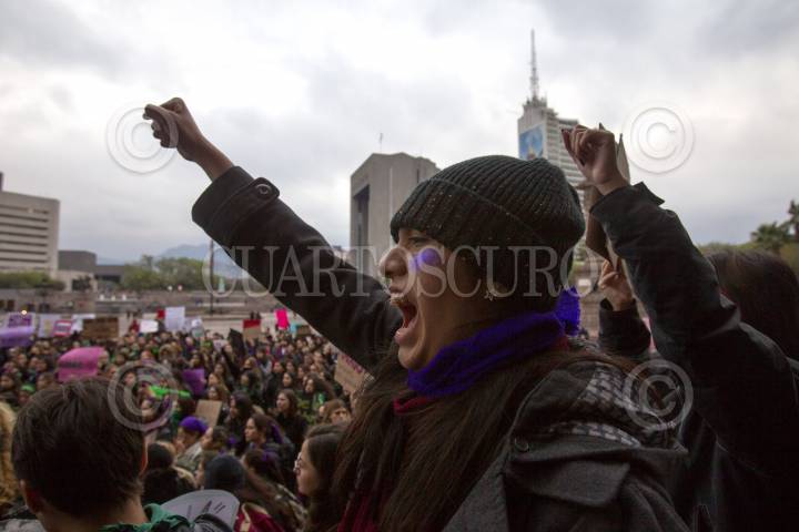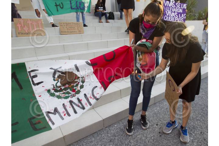 MONTERREY, NUEVO LEÓN, 21FEBRERO2020.- Mujeres miembros de diversos colectivos feministas y estudiantes, acudieron al Palacio de Gobierno para realizar una protesta pacífica por los feminicidios que han habido en el país. FOTO: GABRIELA PÉREZ MONTIEL / CUARTOSCURO.COM