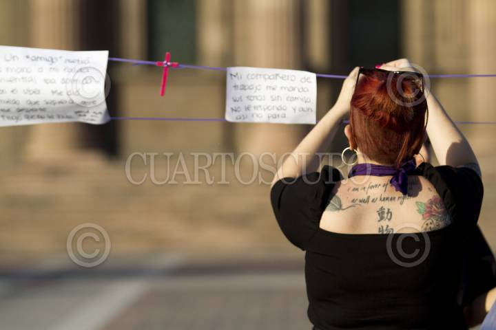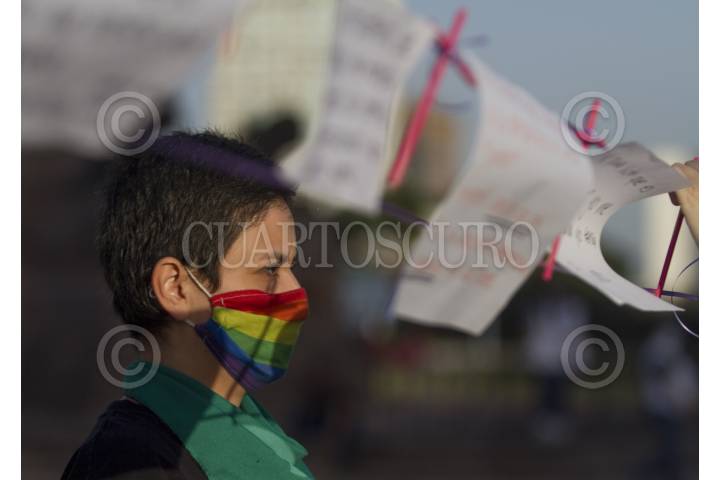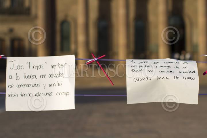 MONTERREY, NUEVO LEÓN, 25NOVIEMBRE2020.- En el marco del Día Internacional de la eliminación de la violencia contra la mujer, integrantes del movimiento feminista en la entidad acudieron a la explanada de los Héroes para manifestarse mediante escritos. Nuevo León ocupa el tercer lugar nacional en feminicidios, así como el sexto lugar en violencia familiar y trata de personas en México y el número once en violaciones en el presente año. FOTO: GABRIELA PÉREZ MONTIEL / CUARTOSCURO.COM