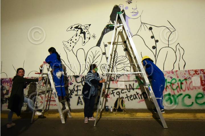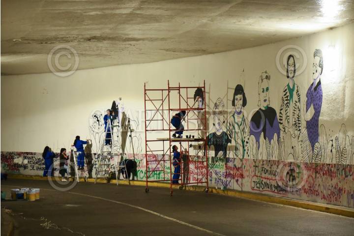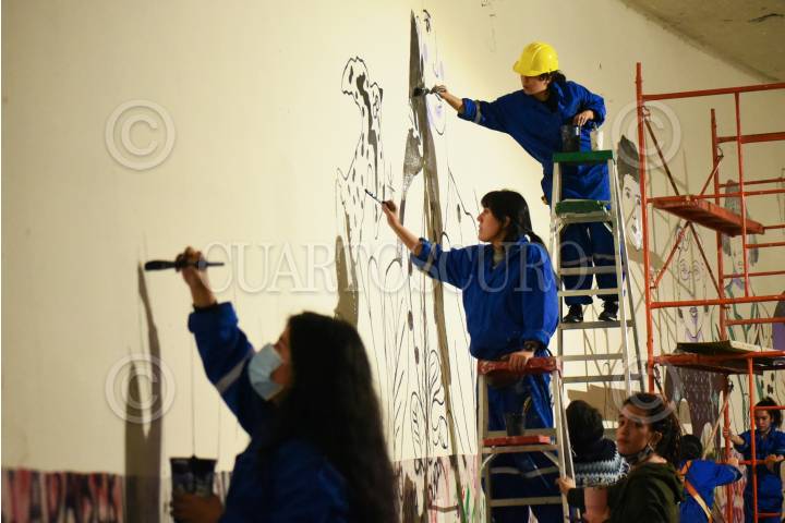 Un grupo de mujeres realizó un mural con el objetivo de representar el pasado, el presente y el futuro del movimiento feminista.