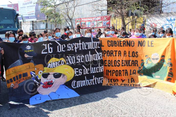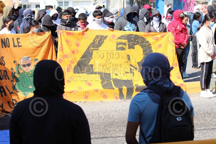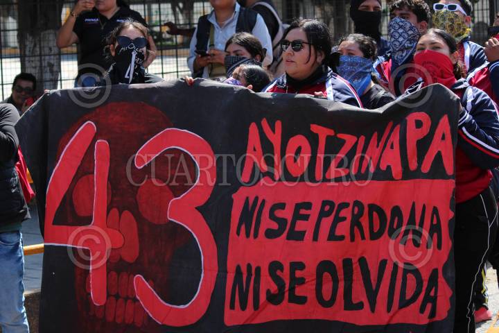 CHILPANCINGO, GUERRERO, 04MARZO2025.- Estudiantes de la Normal Rural de Ayotzinapa realizaron un mitin frente a las instalaciones del Congreso local, en el segundo día de la jornada de lucha, por el primer aniversario del asesinato de su compañero, Yanqui Kothan Gómez Peralta Desde las 10:00 horas de este martes, más de un centenar de estudiantes de Ayotzinapa y de la Federación de Estudiantes Campesinos y Socialistas de México (FECSM), llegaron hasta el sur de Chilpancingo. Los manifestantes cerraron la circulación frente al recinto oficial del Poder Legislativo, instalándose frente a la puerta que da acceso al estacionamiento. En el mitin participaron oradores de las escuelas normales de todo el país, quienes se sumaron al esclarecimiento del caso de Yanqui Kothan, quien murió el pasado 7 de marzo del 2024, tras recibir un disparo en la cabeza por parte de un elemento de la Policía del Estado. FOTO: DASSAEV TÉLLEZ ADAME/CUARTOSCURO.COM