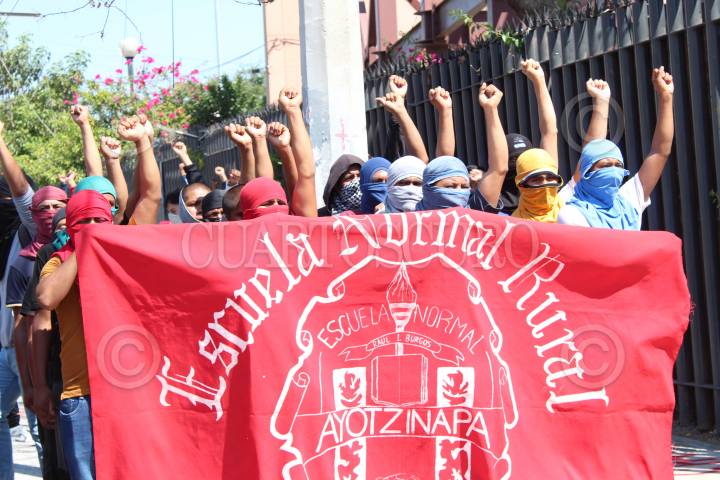 CHILPANCINGO, GUERRERO, 24NOVIEMBRE2017.- Estudiantes que integran el Frente Unido de Normales Publicas del Estado de Guerrero (FUNPEG) llevaron a cabo una marcha del monumento a las banderas hacia la Casa Blanca como se le conoce a la Subsecretaria de Administración y Finanzas de la Secretaria de Educación Guerrero (SEG) para exigir que no le imponga los directivos a la Centenaria Escuela Normal del Estado Ignacio Manuel Altamirano (CENEIMA). FOTO: JOSÉ I. HERNÁNDEZ / CUARTOSCURO.COM