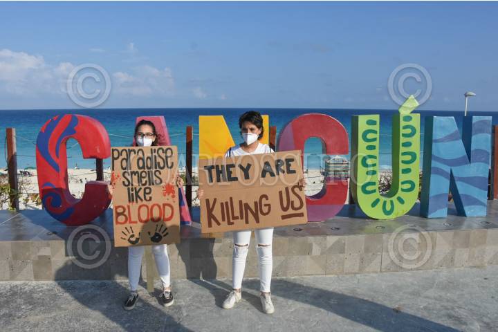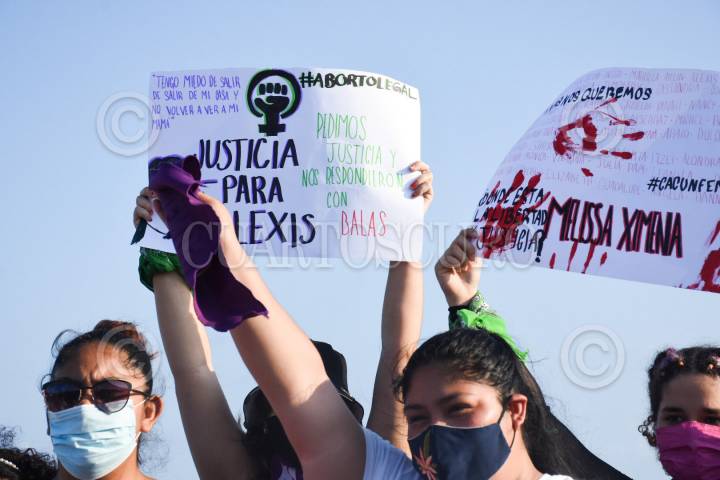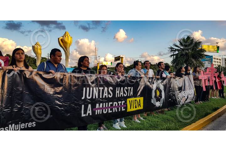 CANCÚN, QUINTANA ROO, 21NOVIEMBRE2019.- Feministas e integrantes de organizaciones de Derechos Humanos realizaron una manifestación pacífica por las víctimas de feminicidios. La protesta se realizó en la Glorieta del Ceviche llamada "Juntas por la Vida". FOTO: ELIZABETH RUÍZ /CUARTOSCURO.COM