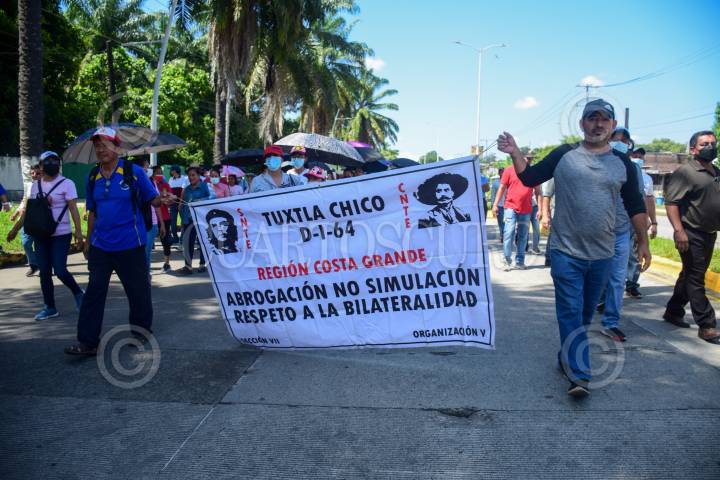 Un grupo de docentes de la CNTE Sección V, marchó de manera pacífica, pidiendo que el Gobierno Federal debe de seguir investigando el Caso de Ayotzinapa y detener expresidente de la República, Enrique Peña Nieto.