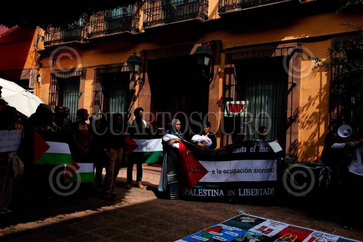 CIUDAD DE MÉXICO, 11JUNIO2025.- En el marco de la marcha global por Gaza, activistas marcharon de manera pacífica a las embajadas de España, Alemania, Francia y Países Bajos para exigir que rompan relaciones con Israel y que liberen a los 12 activistas y periodistas a bordo de la flotilla de la Libertad que buscaba llevar ayuda humanitaria a Gaza. FOTO: ANDREA MURCIA /CUARTOSCURO.COM
