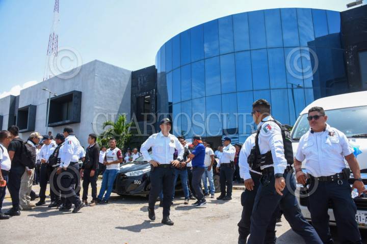 VILLAHERMOSA, TABASCO, 17MARZO2014.- Elementos policíacos tomaron las instalaciones de la Secretaria de Seguridad Pública local y exigieron, mediante un paro de labores, la destitución del general retirado Audomaro Martínez Zapata. En este día se sumaron elementos de las direcciones de Protección Civil, Bomberos y del reclusorio, y se estima que sean al menos tres mil elementos que están contra del servidor público. Así mismo las calles y sus avenidas de esta capital lucieron vacías y sin recorridos de patrullajes por parte de esta corporación policíaca. FOTO: MARCO POLO GUZMÁN HERNÁNDEZ /CUARTOSCURO.COM