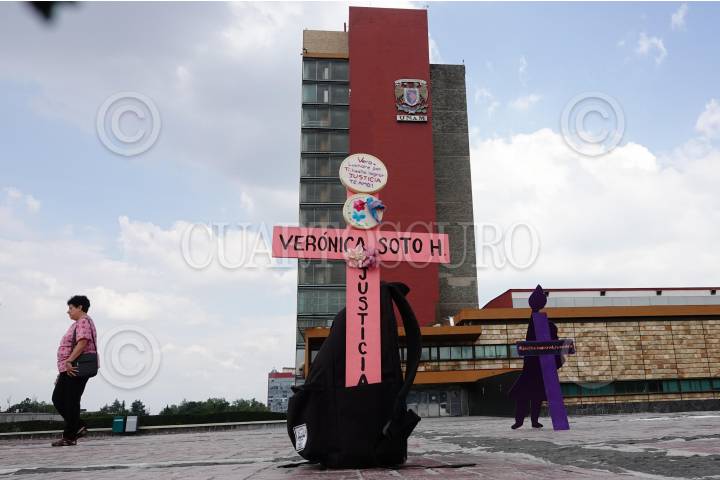 CIUDAD DE MÉXICO, 04SEPTIEMBRE2024.- Andrea Soto mamá de Verónica Soto, víctima de feminicidio y el colectivo, "Las siemprevivas", realizaron una protesta frente a la Rectoría de la Universidad Autónoma de México para exigirle a las autoridades universitarias se expida el título profesional de la licenciatura en Enfermería y Obstetricia de la estudiante víctima de feminicidio. FOTOS: ROGELIO MORALES /CUARTOSCURO.COM