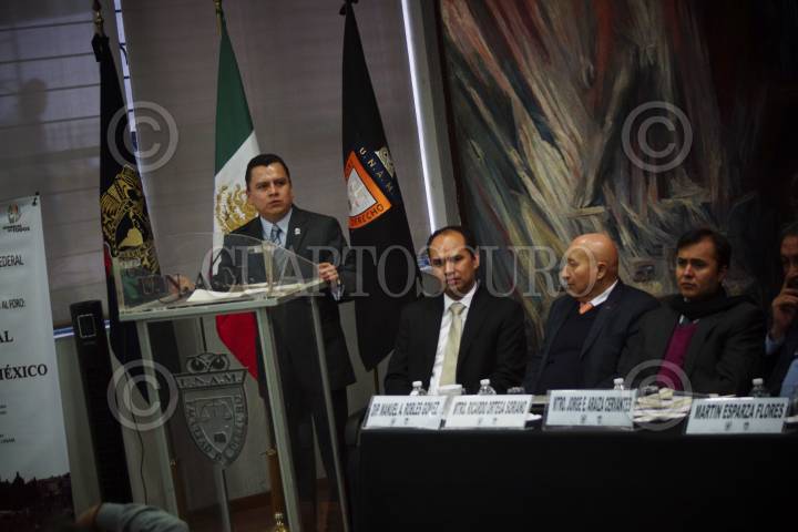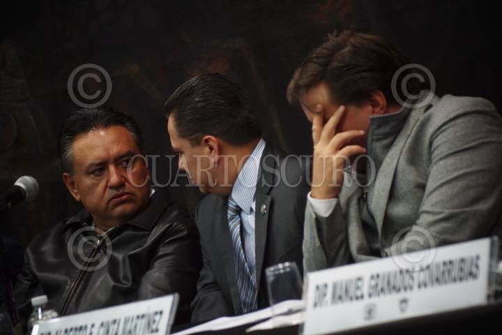 MÉXICO, D.F., 27NOVIEMBRE2013.- El diputado Alejandro Robles, diputado del PRD, el presidente de la Comisión de Gobierno de la ALDF, Manuel Granados Covarrubias, Javier Lozano Alarcón diputado del PAN y Martín Esparza, líder sindical del SME, realizaron el primero de una serie de foros sobre la "regulación de las marchas y manifestaciones", esto en el Auditorio Benito Juárez de la Facultad de Derecho de la UNAM. FOTO: PEDRO ANZA /CUARTOSCURO.COM