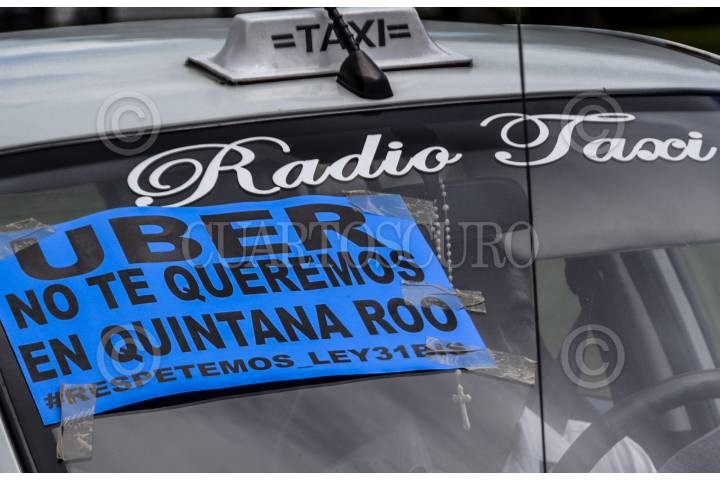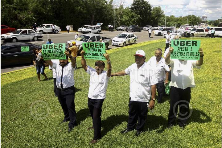 CANCÚN, QUINTANA ROO, 15SEPTIEMBRE2016.- Aproximadamente 2 mil taxistas integrantes del Sindicato Andrés Quintana Roo se manifiestaron en la zona hotelera para protestar contra la inclusión en el estado de la compañía de transporte privado "Uber". FOTO: ELIZABETH RUIZ /CUARTOSCURO.COM