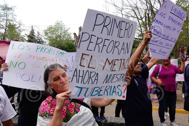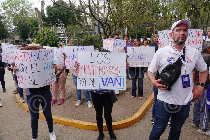 CIUDAD DE MÉXICO, 11ABRIL2024.- Supuestos vecinos de la periferia del Pozo Alfonso XIII se manifestaron con el objetivo de desmentir las acusaciones del agua contaminada, esto durante la conferencia de Santiago Taboada, candidato a la jefatura de gobierno por la coalición "Va por la CDMX" y Lía Limón, candidata a la alcaldía de Álvaro Obregón. FOTOS: ROGELIO MORALES /CUARTOSCURO.COM