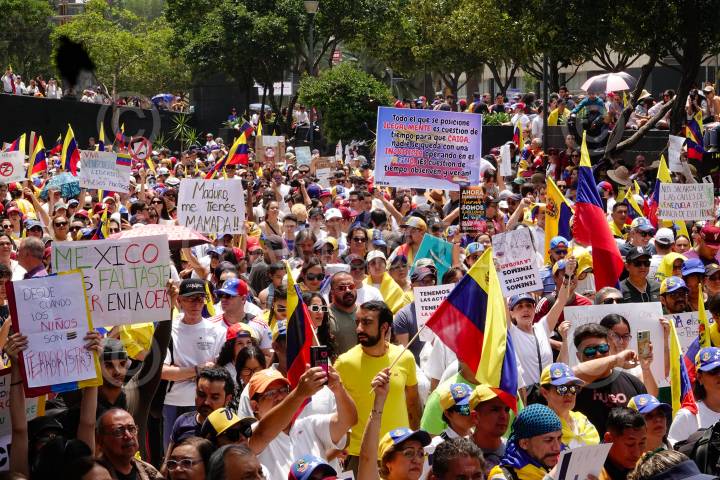 CIUDAD DE MÉXICO, 17AGOSTO2024.- La comunidad venezolana radicada en nuestro país realizó una protesta denominada Gran Protesta Mundial por la Verdad “Ganó Venezuela” en una de las explanadas del Monumento a la Revolución esto debido a un supuesto fraude en las elecciones de dicho país. FOTOS: ROGELIO MORALES /CUARTOSCURO.COM