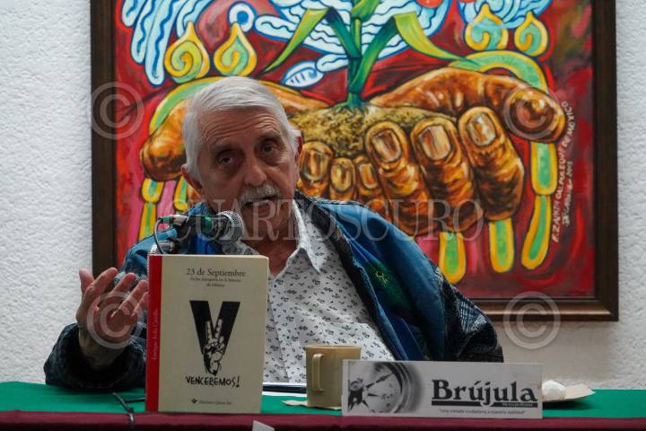 CIUDAD DE MÉXICO, 15FEBRERO2025.- El profesor normalista Enrique Ávila Carrillo, líder estudiantil, historiador y escritor, durante la presentación de su libro “23 de septiembre, fecha disruptiva en la historia de México”, en la Central Campesina Cardenalista, Col. Roma Sur. El libro es un recorrido por distintos acontecimientos que comparten una misma fecha "23 de septiembre", y ademas tienen en común el autoritarismo, genocidio y la violencia del estado mexicano en contra de las luchas por los derechos políticos y sociales a lo largo de la historia de México. FOTO: MAGDALENA MONTIEL/CUARTOSCURO.COM