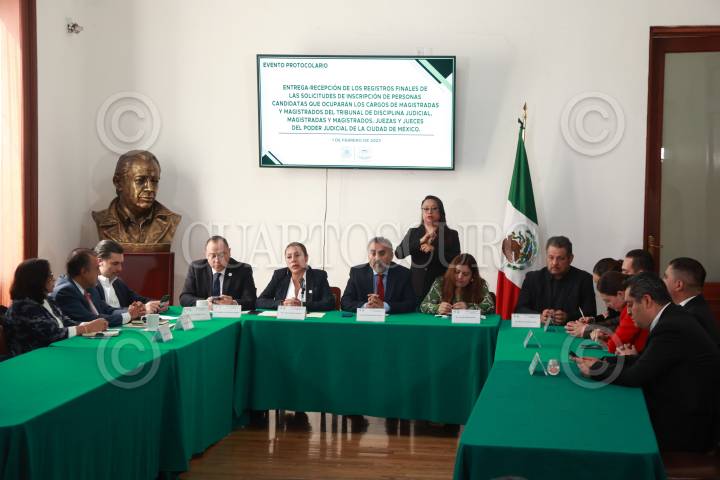 CIUDAD DE MÉXICO, 01FEBRERO2025. Evento protocolario de la entrega y recepción de los registros finales de las solicitudes de inscripción de personas a ocupar cargos de magistradas y magistrados; en el Salón Heberto Castillo del Congreso de la Ciudad de México. FOTO: EDGAR NEGRETE LIRA/CUARTOSCURO.COM