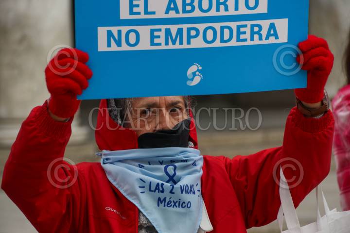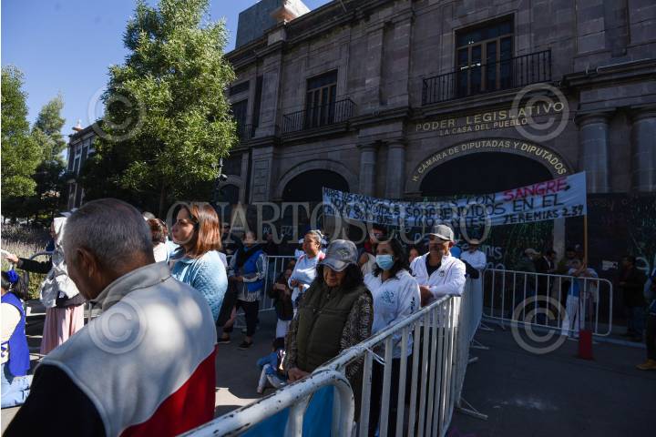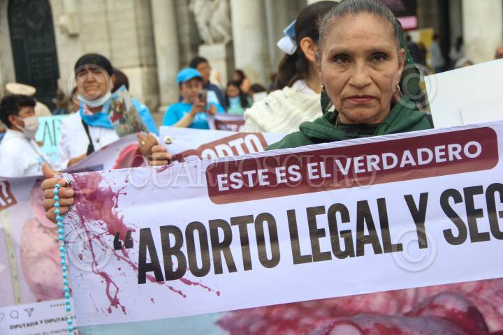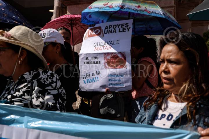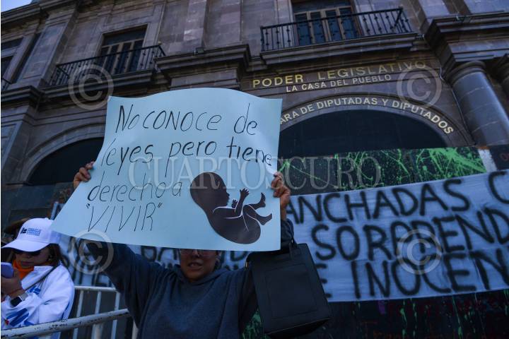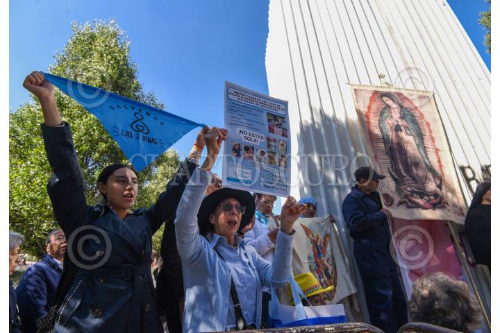 ZACATECAS, ZACATECAS, 25MARZO2025.- Ciudadanos Provida se manifestaron a las puertas del Congreso Legislativo Estatal en demanda de que se rechacé la reforma de la Ley de Salud estatal con la que se busca garantizar el acceso a la interrupción del embarazo luego de su despenalización. La LXV Legislatura del Estado pretende subir la propuesta para su debate y votación después de medio día. FOTO: ADOLFO VLADIMIR /CUARTOSCURO.COM