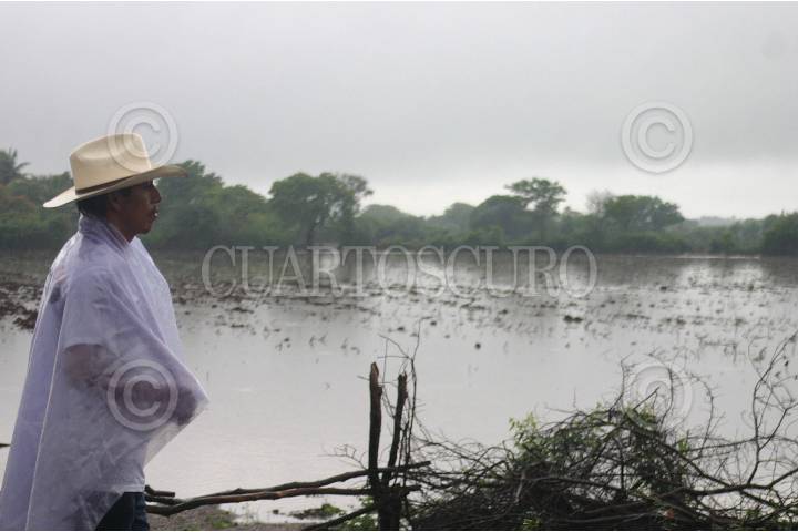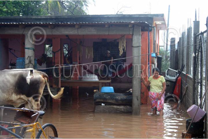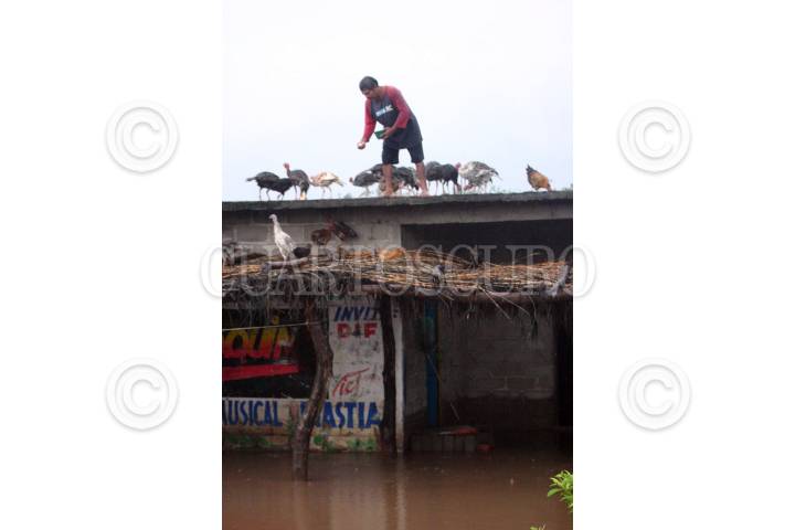 JUCHITAN DE ZARAGOZA, OAXACA, 10JUNIO2008.- El mal tiempo golpea al Sureste mexicano y a consecuencia de las fuertes lluvias provocadas por la onda tropical número 4, el río "Los Perros" se desbordó en este municipio. El Servicio Metereológico Nacional adelantó que este fin de semana se espera un potencial de lluvia mayor al 80 por ciento con actividad eléctrica y granizo. FOTO: MAX NUÑEZ/CUARTOSCURO.COM
