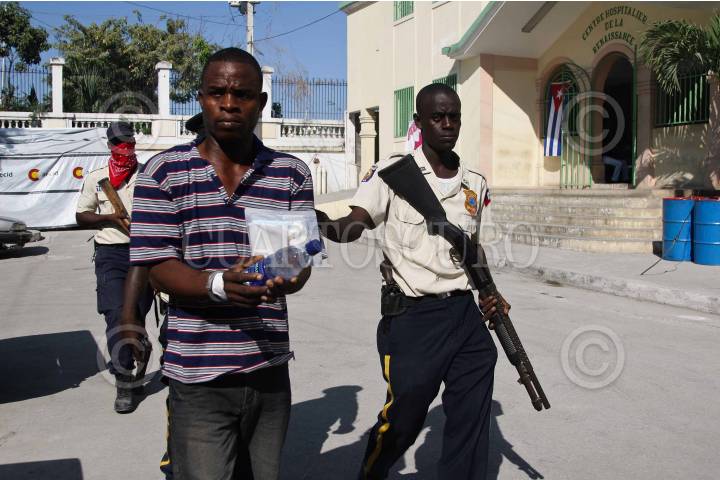 PUERTO PRÍNCIPE, HAITI, 26ENERO2009.- Una persona fue detenida dentro de un hospital, acusada de pillaje. La persona estaba siendo atendida por heridas supuestamente provocadas por el sismo del pasado martes. FOTO: ISAAC ESQUIVEL/CUARTOSCURO.COM