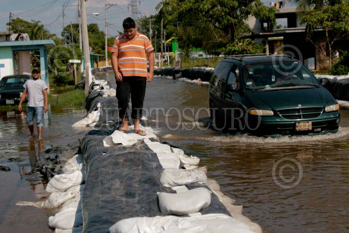 VILLAHERMOSA, TABASCO, 03OCTUBRE2010.- Las inundaciones provocados por los desbordes de los distintos ríos continúan provocando afectaciones por diferentes colonias de la capital "Choca". En la colonia la Lima; una de las pocas que no registraban inundaciones, hoy amaneció inundada tras el desbordamiento del río Grijalva. FOTO: MARCO POLO GUZMÁN HERNÁNDEZ/CUARTOSCURO.COM