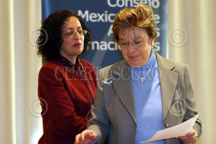 MEXICO, D.F. 22 NOVIEMBRE 2004.- Guadalupe González, catedrática-investigadora, y Olga Pellicer, investigadora del ITAM, durante la presentación del primer documento de análisis y perspectiva en política exterior publicado por el COLMEX, realizada en el Club de Industriales. FOTO: Sandra Perdomo/CUARTOSCURO.COM