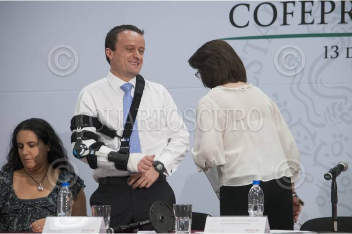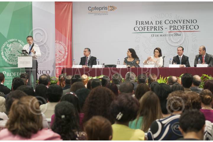 MÉXICO, D.F., 13MAYO2014.- Mikel Arriola, titular de la Comisión Federal para la Protección contra Riesgos Sanitarios (COFEPRIS) y Lorena Martínez, Procuradora Federal del Consumidor (PROFECO), encabezaron una firma de convenio entre estas dependencias de gobierno para implementar acciones conjuntas y coordinadas que pongan alto a la publicidad engañosa. FOTO: DIEGO SIMÓN SÁNCHEZ /CUARTOSCURO.COM