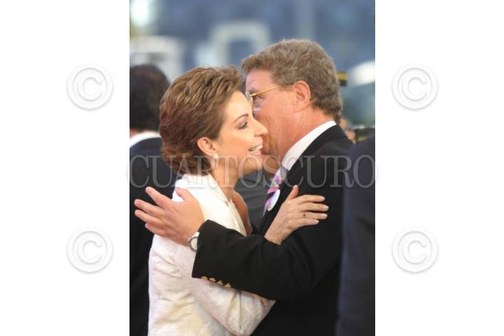 MEXICO D.F 13 ENERO 2005.- Marta Sahagún de Fox saluda al publicista Carlos Alazraki durante la firma de compromiso para el Fomento a la Unidad Familiar, en el patio de la chimenea del Papalote Museo del Niño. FOTO: Eunice Adorno/CUARTOSCURO.COM