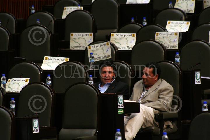 MÉXICO, D.F. 25ABRIL2007.- Legisladores perredistas colocaron letreros con la leyenda "Si se pudo" sobre las curules en la sesión en la Cámara de Diputados, ante la aprobación de la despenalización del aborto. FOTO: PAOLA HIDALGO/CUARTOSCURO.COM