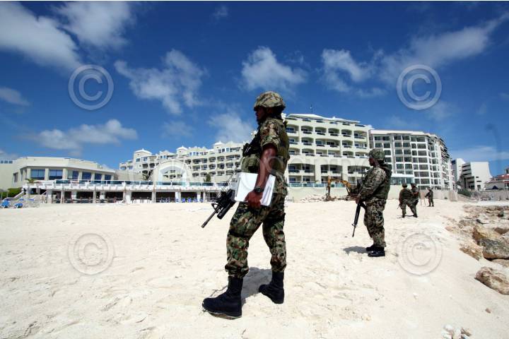 CANCUN, QUINTANA ROO, 23SEPTIEMBRE2009.- la Procuraduría Federal de Protección al Ambiente (Profepa) en compañía del ejercito y la marina, realizaron un operativo en las playas del hotel Gran Caribe Real donde encontraron que en vez de retirar los espigones se pudo constatar un mayor relleno de playa. FOTO: AMARANTA PRIETO/CUARTOSCURO.COM