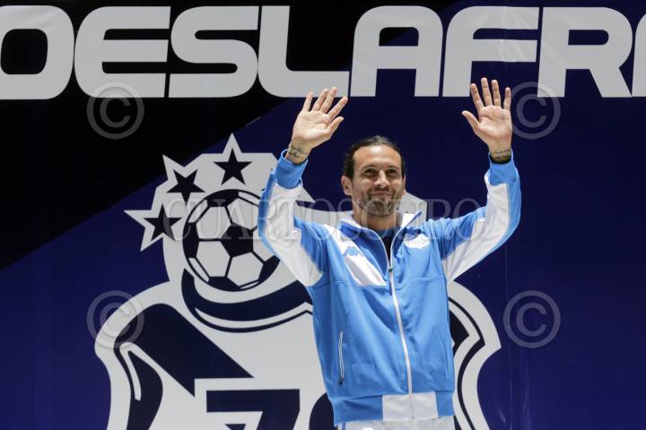 PUEBLA, PUEBLA, 16JULIO2014.- El ex-seleccionado Cuauhtémoc Blanco durante la presentación del plantel del Puebla de la Franja para el Torneo Apertura 2014 de la Liga MX en el estadio Cuahutémoc. FOTO: HILDA RÍOS/ CUARTOSCURO.COM