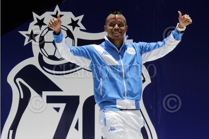 PUEBLA, PUEBLA, 16JULIO2014.- El jugador John Freddy Pajoy durante la presentación del plantel del Puebla de la Franja para el Torneo Apertura 2014 de la Liga MX en el estadio Cuahutémoc. FOTO: HILDA RÍOS/ CUARTOSCURO.COM