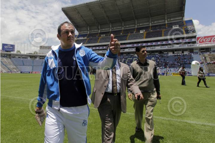 PUEBLA, PUEBLA, 16JULIO2014.- El técnico Rubén Omar Romano durante la presentación del plantel del Puebla de la Franja para el Torneo Apertura 2014 de la Liga MX en el estadio Cuahutémoc. FOTO: HILDA RÍOS/ CUARTOSCURO.COM