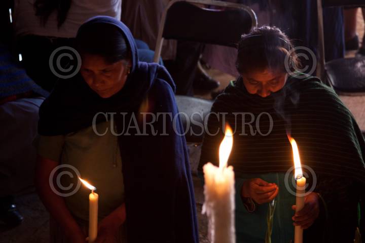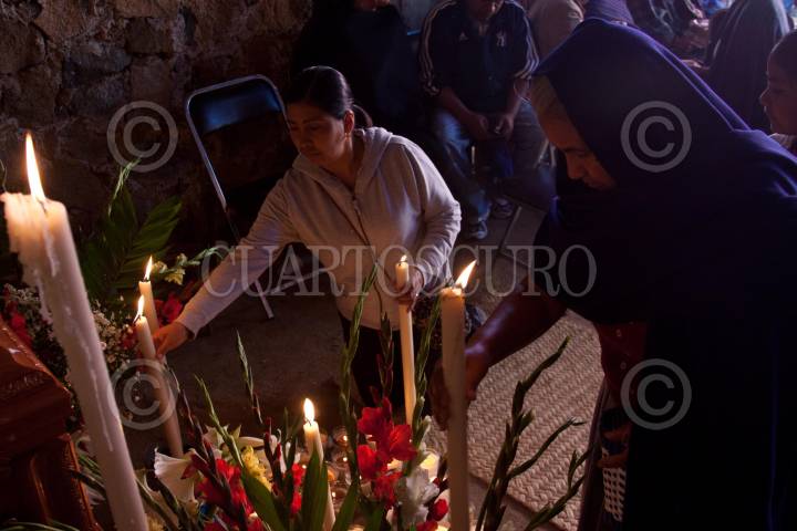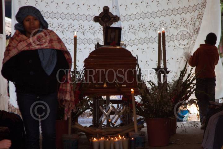 CHERÁN, MICHOACÁN, 11JULIO2012.- Comuneros velan los cadáveres de Urbano Macías y Guadalupe Jerónimo quienes fueron encontrados con huellas de tortura en un cerro conocido como El Pueblito. Ambos comuneros habían desaparecido desde el pasado domingo cuando realizaban labores de pastoreo en un pueblo cercano a la cabecera municipal. FOTO: IVÁN STEPHENS /CUARTOSCURO.COM