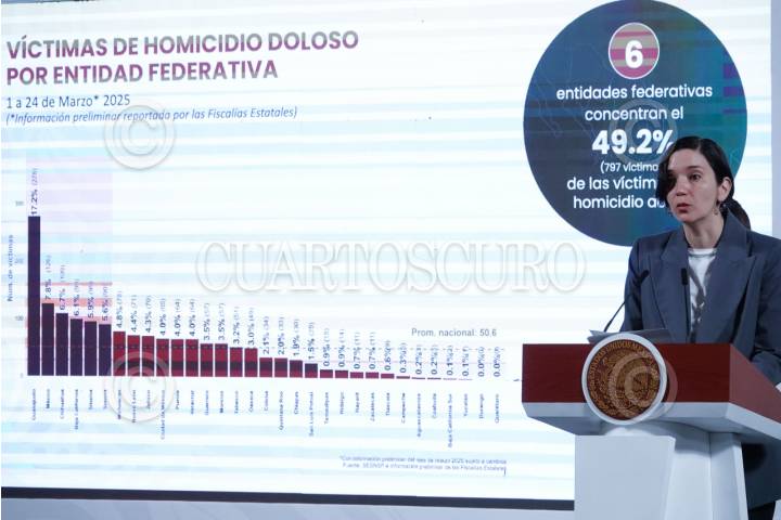 CIUDAD DE MÉXICO, 25MARZO2025.- Marcela Figueroa, titular del Secretariado Ejectuvi del Sistema Nacional de Seguridad Pública, durante la conferencia “Mañanera del Pueblo” en la que se presentó en informe semanales materia de seguridad. FOTO: GALO CAÑAS/CUARTOSCURO.COM