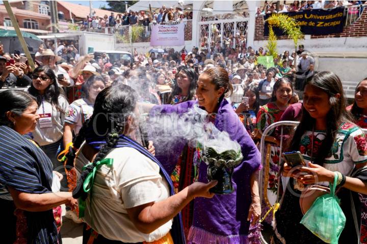 PARACHO, MICHOACÁN, 05ABRIL2025.- Claudia Sheinabum, presidenta de México, encabezó el acto protocolario "Plan de justicia para el pueblo purépecha". FOTO: PRESIDENCIA/CUARTOSURO.COM