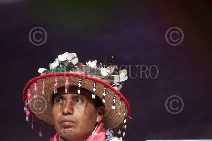 MÉXICO, D.F., 24MAYO2012.- Eleuterio de la Cruz Ramírez, presidente de la Unión Wixárika de Centros Ceremoniales de los estados de Jalisco, Durango y Nayarit, durante la ceremonia en la cual se dió la Protección de los Sitios Sagrados del Pueblo de Wirikuta, en San Luis Potosí. Durante la ceremonia en la cual se declararon 45 mil hectáreas parte de la reserva minera nacional, además de que la empresa canadiense First Majestic se comprometió a no realizar explotación minera en el territorio sagrado de Wirikuta y cedió sus 22 concesiones que se encuentran en esa área al pueblo wixárika. FOTO: MOISÉS PABLO /CUARTOSCURO.COM