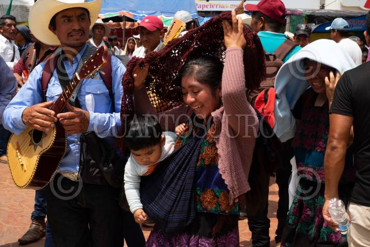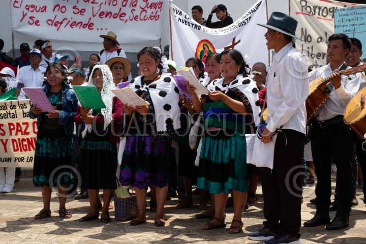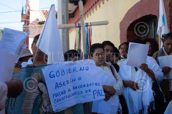 CHALCHIHUITAN, CHIAPAS, 20ABRIL2024.- Decenas de integrantes del pueblo creyente de la región peregrinaron por la cabecera municipal para exigir paz en sus comunidades. El incremento en la apertura de cantinas en la demarcación ha generado el alcoholismo en los jóvenes, también estas sirven como fachadas de narcomenudeo donde la principal droga que se introduce al mercado de las comunidades es el cristal, que ha llevado a jóvenes y adultos a perder la vida. FOTO: ISABEL MATEOS /CUARTOSCURO.COM