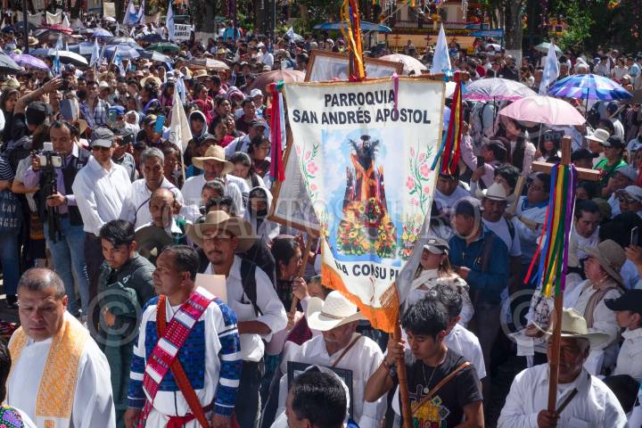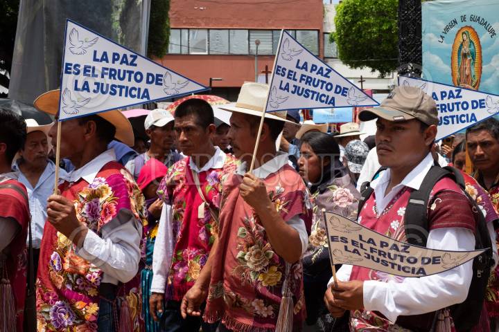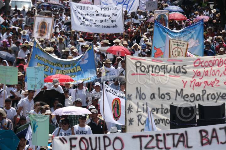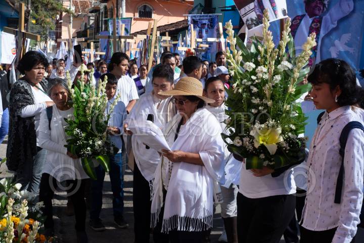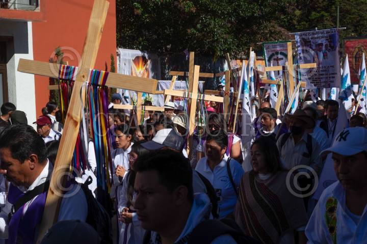 SAN CRISTOBAL DE LAS CASAS, CHIAPAS, 29AGOSTO2024.- Ante la realidad violenta que se vive en diferentes regiones del estado el pueblo creyente organizado realizó una peregrinación rumbo a la tumba donde descansa Tjatik Samuel Ruiz, quien fuera promotor de La Paz en en estado durante la década de los noventa. FOTO: ISABEL MATEOS /CUARTOSCURO.COM