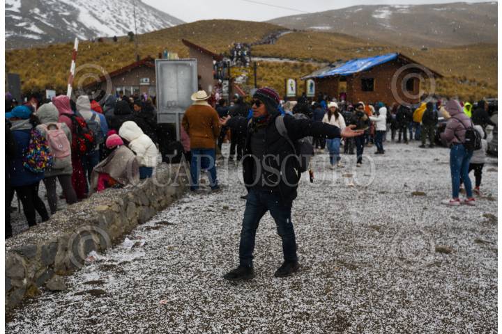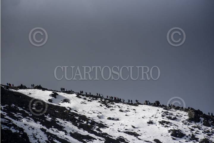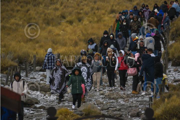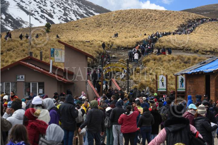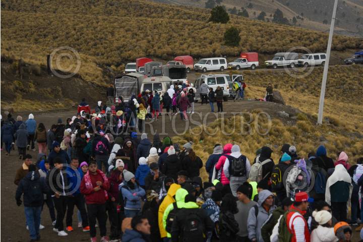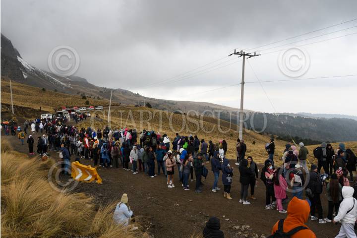 ZINACANTEPEC, ESTADO DE MÉXICO, 02FEBRERO2025.- Cientos de turistas procedentes de distintos estados de México y países como Colombia y Argentina aprovecharon el primer puente del año para visitar el Nevado de Toluca, algunos pudieron disfrutar un poco de nieve al bajar la temperatura durante la tarde de este domingo. FOTO: CRISANTA ESPINOSA AGUILAR /CUARTOSCURO.COM