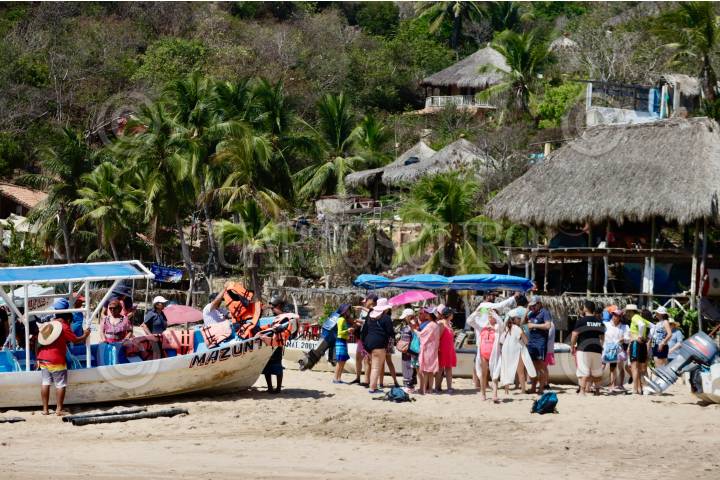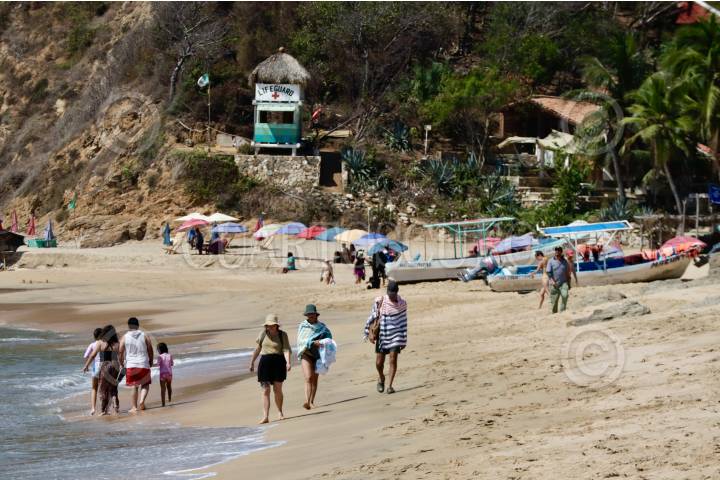 SANTA MARÍA TONAMECA, OAXACA, 15MARZO2025.- Personas disfrutan de las playas en la costa de Oaxaca en este puente vacacional con motivo del natalicio de Benito Juárez. La Secretaría de Turismo del Estado (Sectur) estimó una derrama económica de 260 millones de pesos y una ocupación hotelera promedio de 79.84 por ciento en los principales destinos de playa. FOTO: CAROLINA JIMÉNEZ MARISCAL/CUARTOSCURO.COM